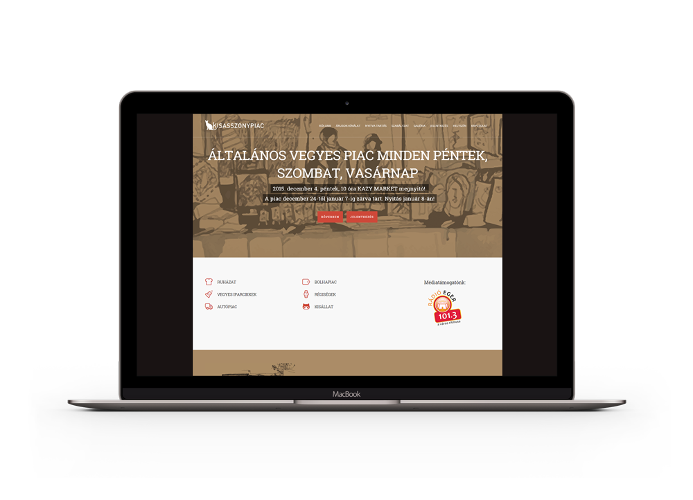 Eger legújabb vásárterének, a Kisasszony Piac weblapjának tervezésekor szem előtt tartottuk a hagyományos piaci kereskedelem atmoszféráját, ötvözve a mai trendeknek megfelelő dizájnnal.